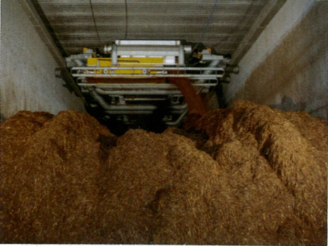 (2)第三天第一次翻堆倒仓:将堆肥移出,再填入发酵槽,并添加发酵工艺回收水